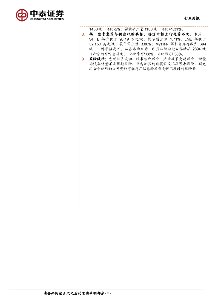 中泰证券:有色金属行业周报:锡精矿进口维持低位,支撑锡价中枢上行.pdf
