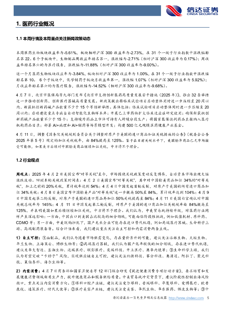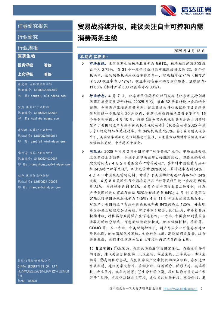 信达证券:医药生物行业周报:贸易战持续升级,建议关注自主可控和内需消费两条主线.pdf