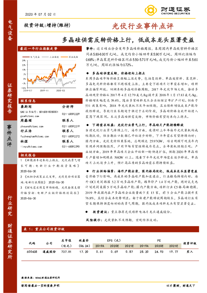 财通证券:光伏行业事件点评:多晶硅供需反转价格上行,低成本龙头显著受益.pdf