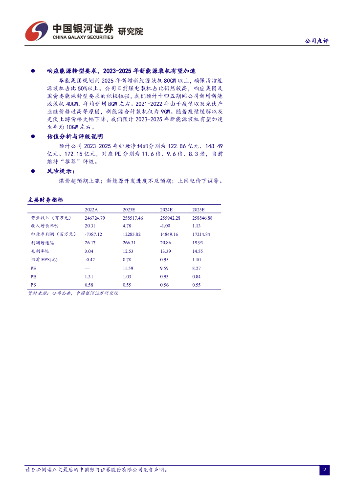 中国银河:华能国际(600011)-煤电实现扭亏为盈,新能源装机明显加速.pdf