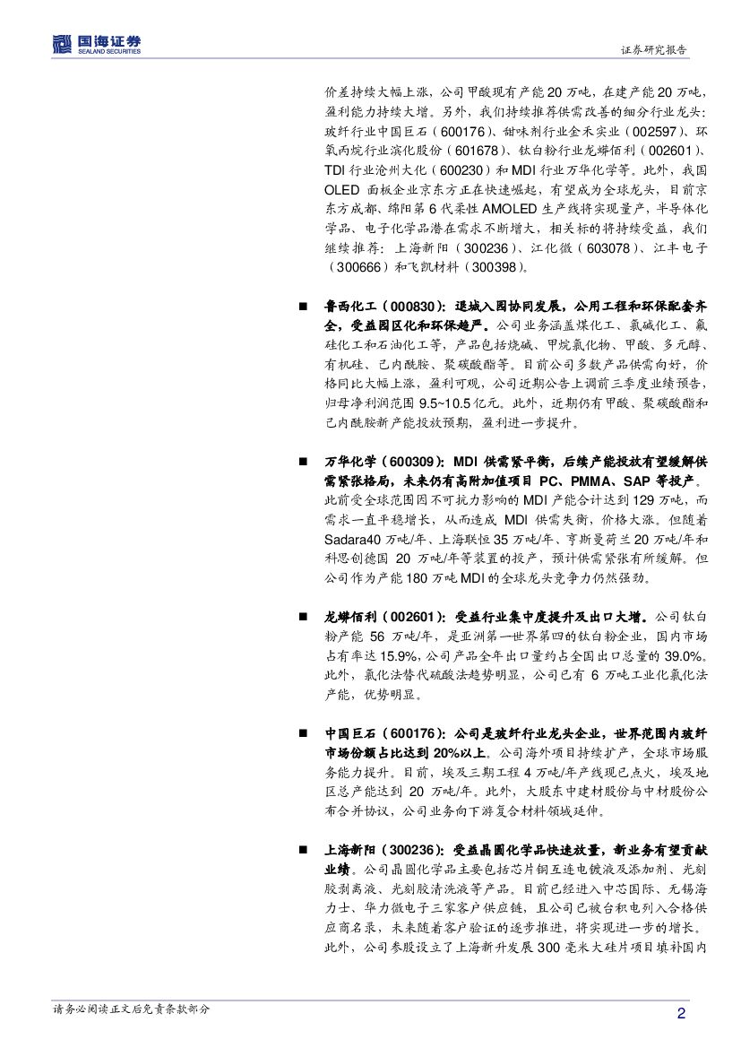 国海证券:化工行业周报:关注甲酸、TDI等涨价品种,推荐细分领域龙头及电子化学品产业链标的.pdf