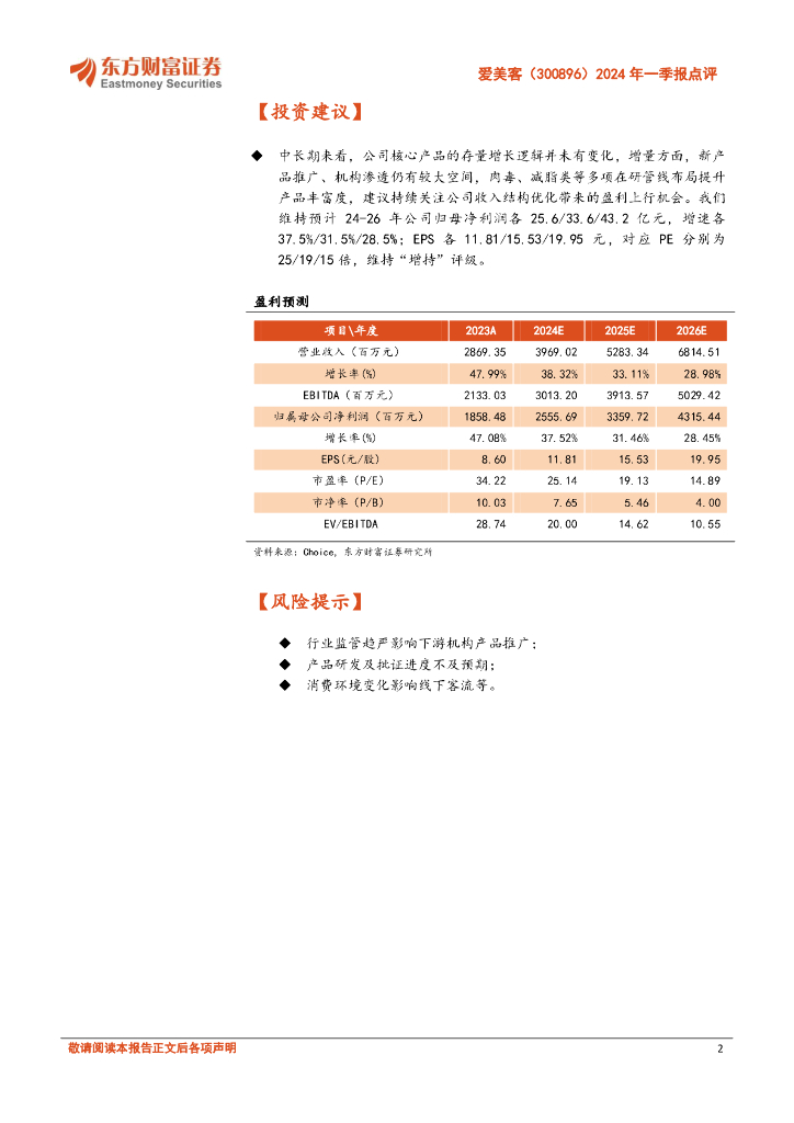 东方财富证券:爱美客(300896)-2024年一季报点评:24Q1归母净利润同比+27%,关注医美龙头的中长期成长空间.pdf