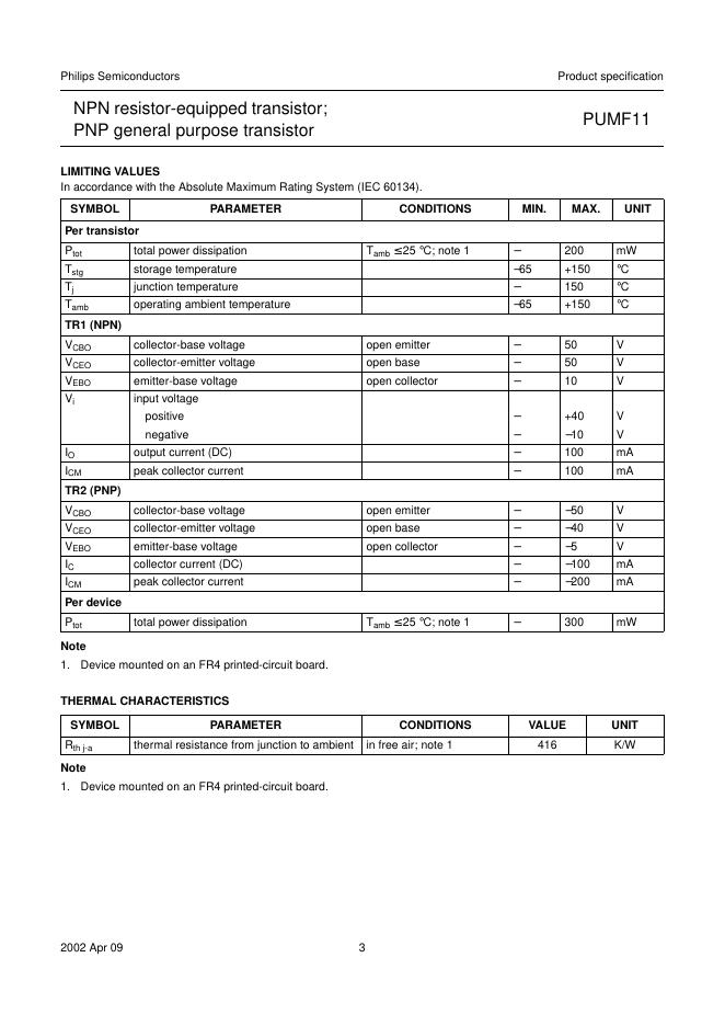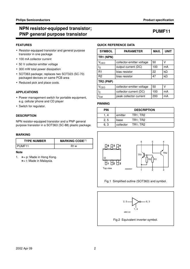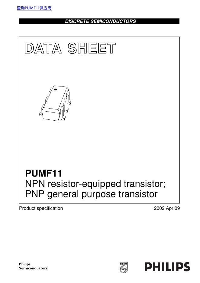 PHILIPS PUMF11 NPN resistor-equipped transistor; PNP general purpose transistor 数据手册.pdf