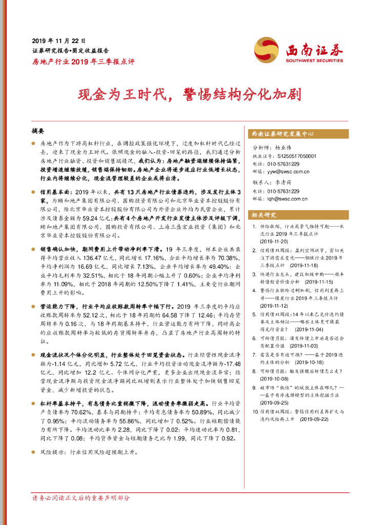 西南证券:房地产行业2019年三季报点评:现金为王时代,警惕结构分化加剧.pdf
