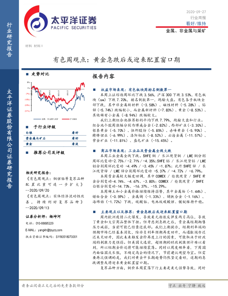 太平洋证券:有色周观点:黄金急跌后或迎来配置窗口期.pdf