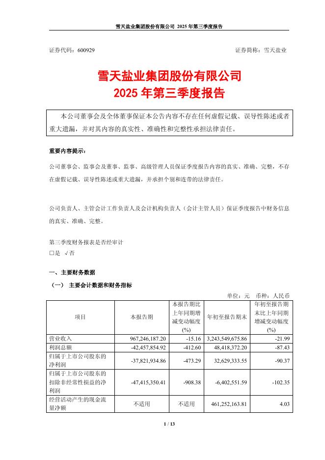 600929-雪天盐业:2025年第三季度报告.pdf