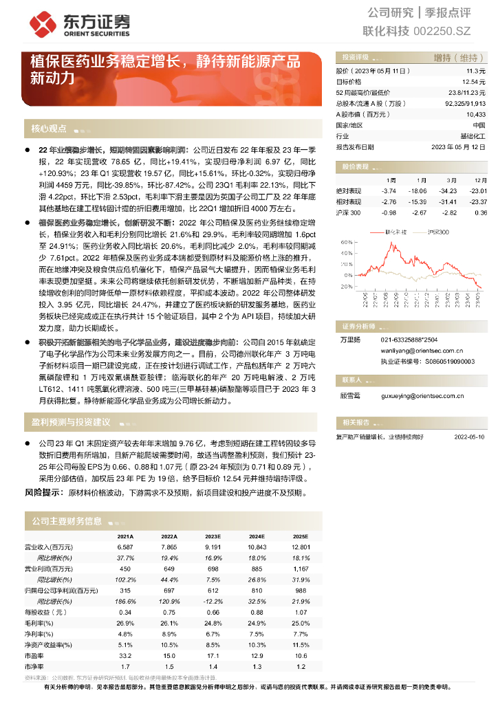 东方证券:联化科技(002250)-植保医药业务稳定增长,静待新能源产品新动力.pdf
