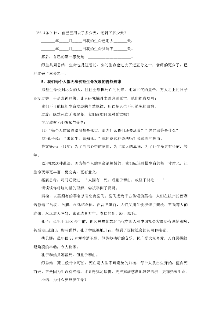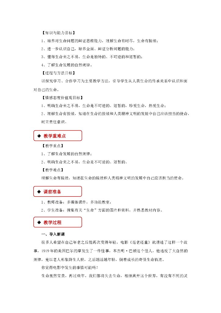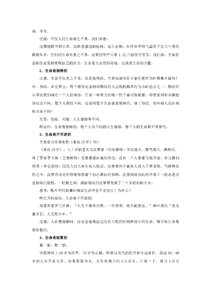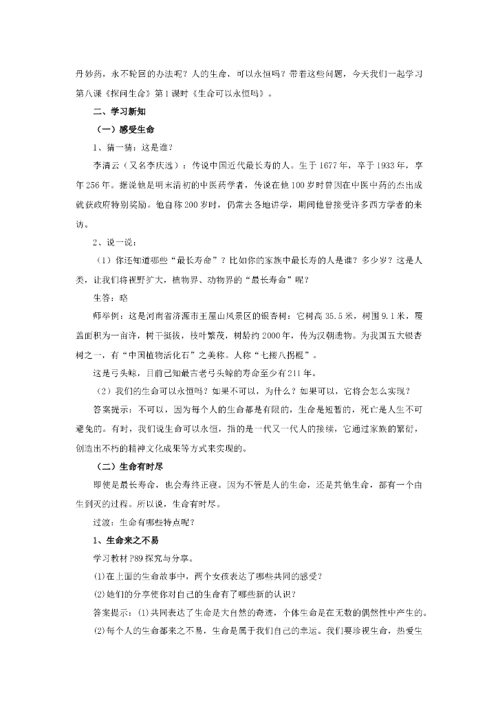 七年级上册 初中道德与法治8.1《生命可以永恒吗》教学设计.doc