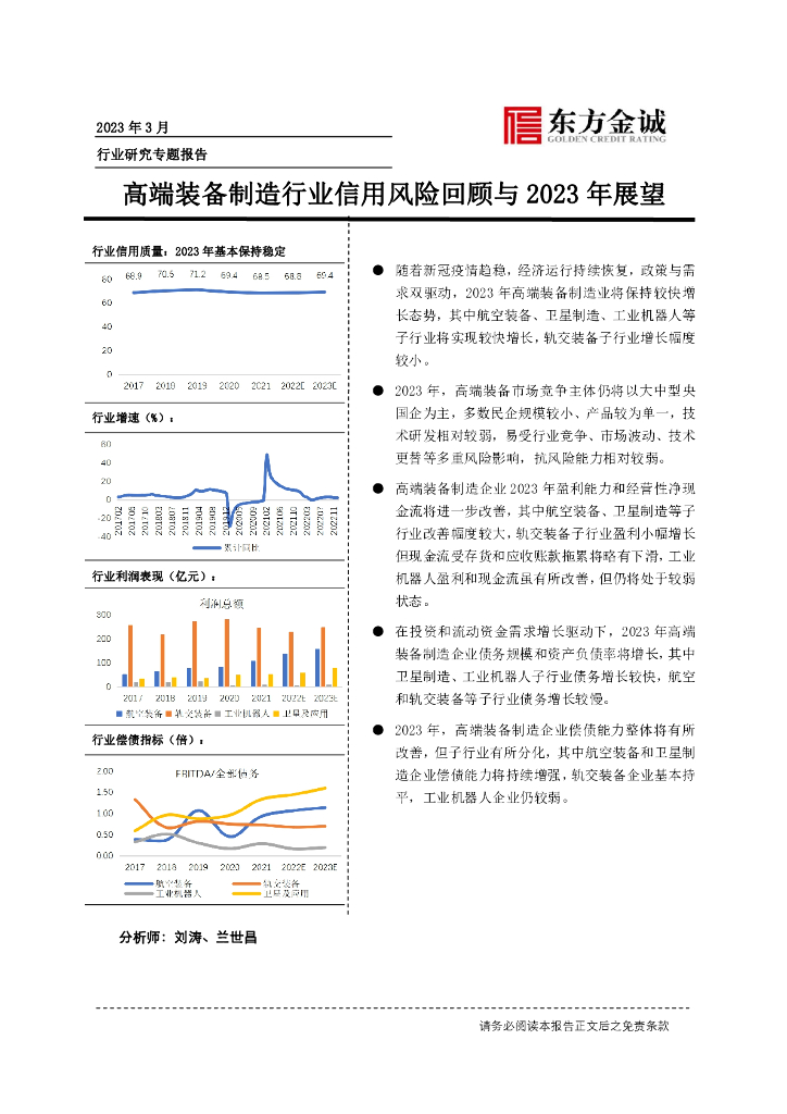 东方金诚:展望系列-高端装备制造行业信用风险回顾与2023年展望.pdf