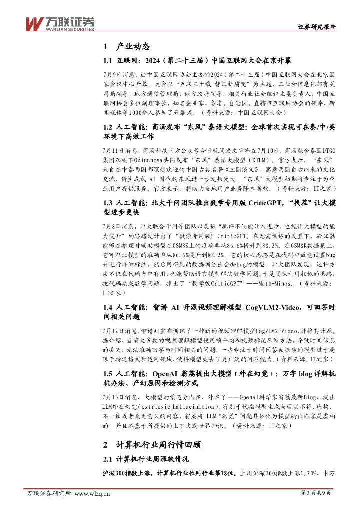 万联证券:计算机行业周观点:继续关注人工智能大模型应用领域.pdf