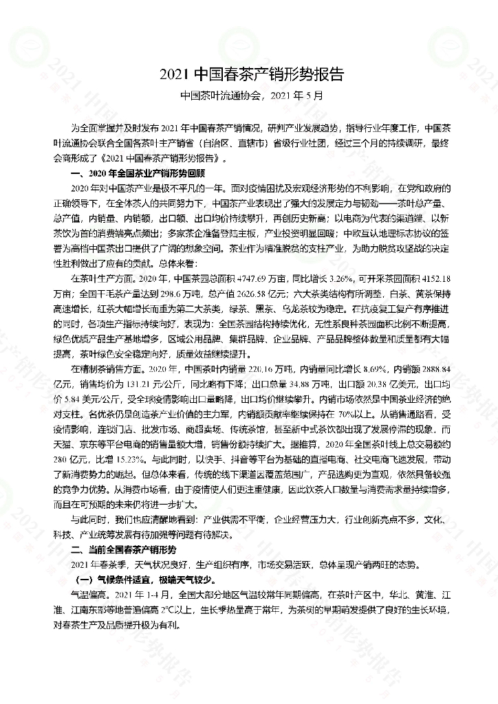 中国茶叶流通协会:2021中国春茶产销形势报告.pdf