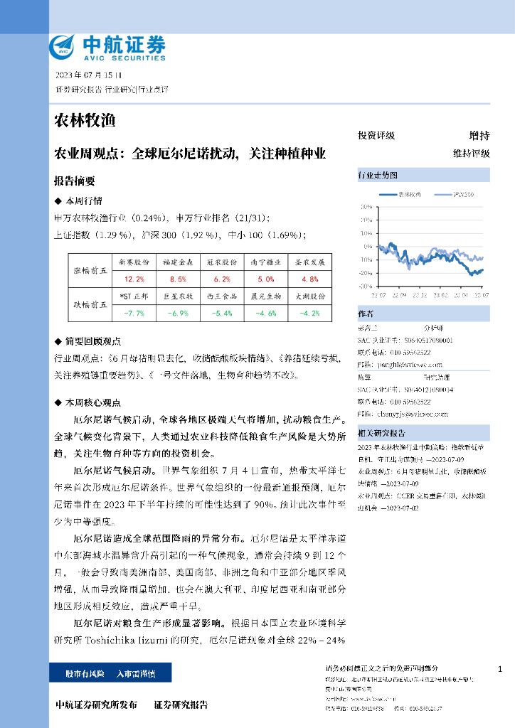 中航证券:农业周观点:全球厄尔尼诺扰动,关注种植种业.pdf