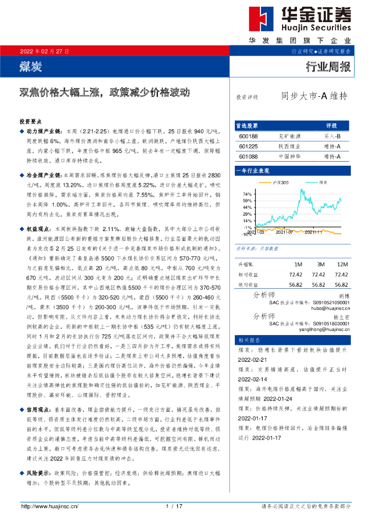华金证券:煤炭:双焦价格大幅上涨,政策减少价格波动.pdf
