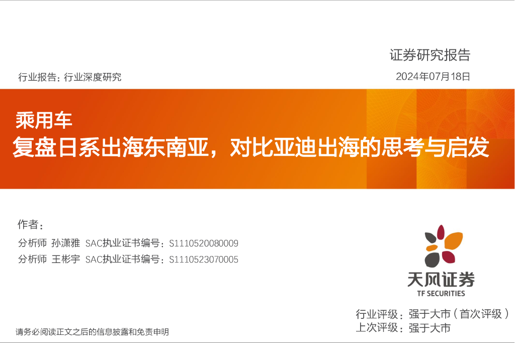 天风证券:乘用车行业深度研究:复盘日系出海东南亚,对比亚迪出海的思考与启发.pdf