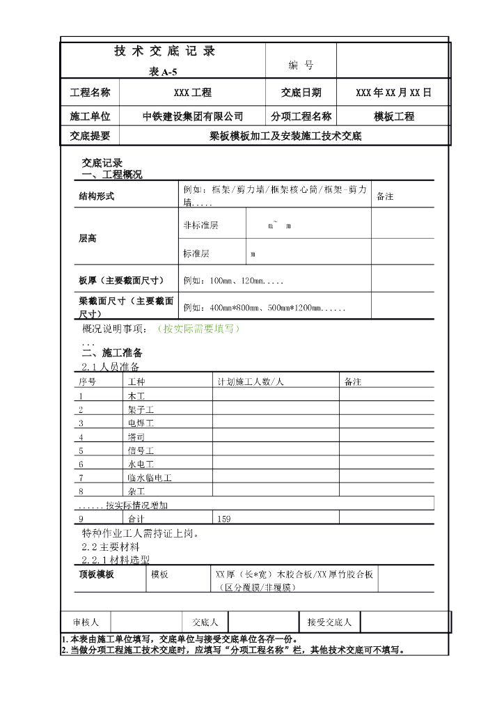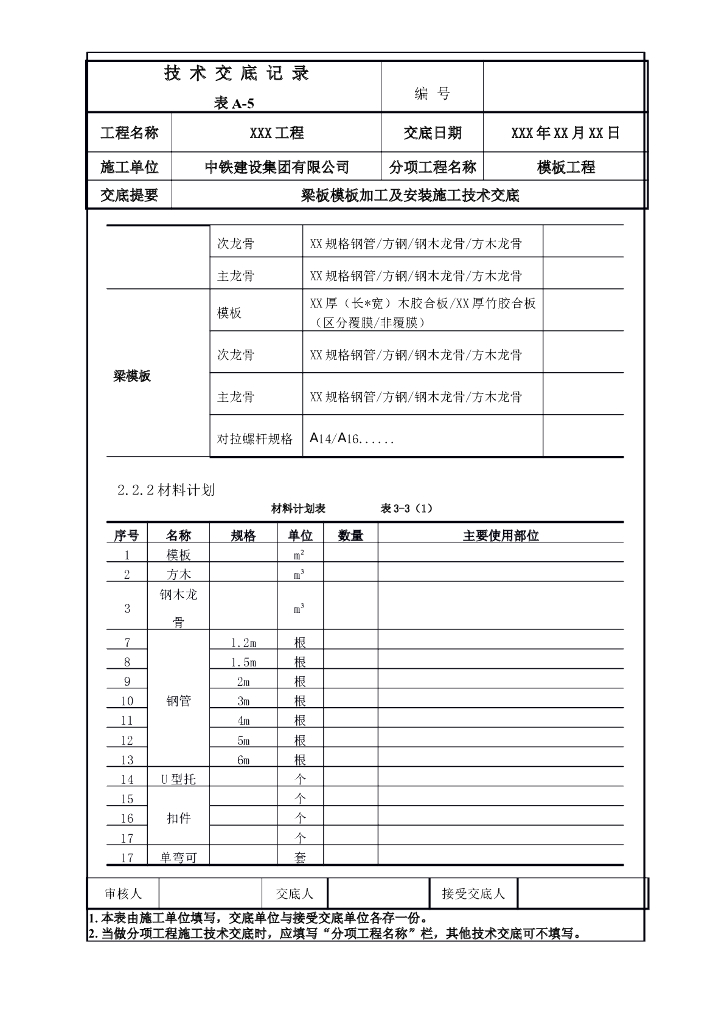 梁板模板加工及安装施工技术交底.doc