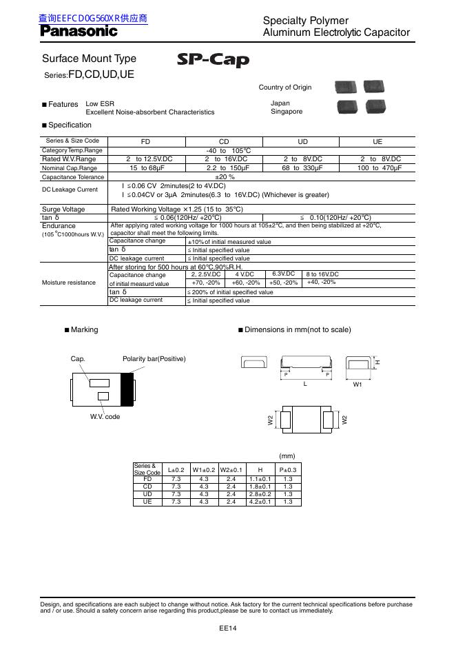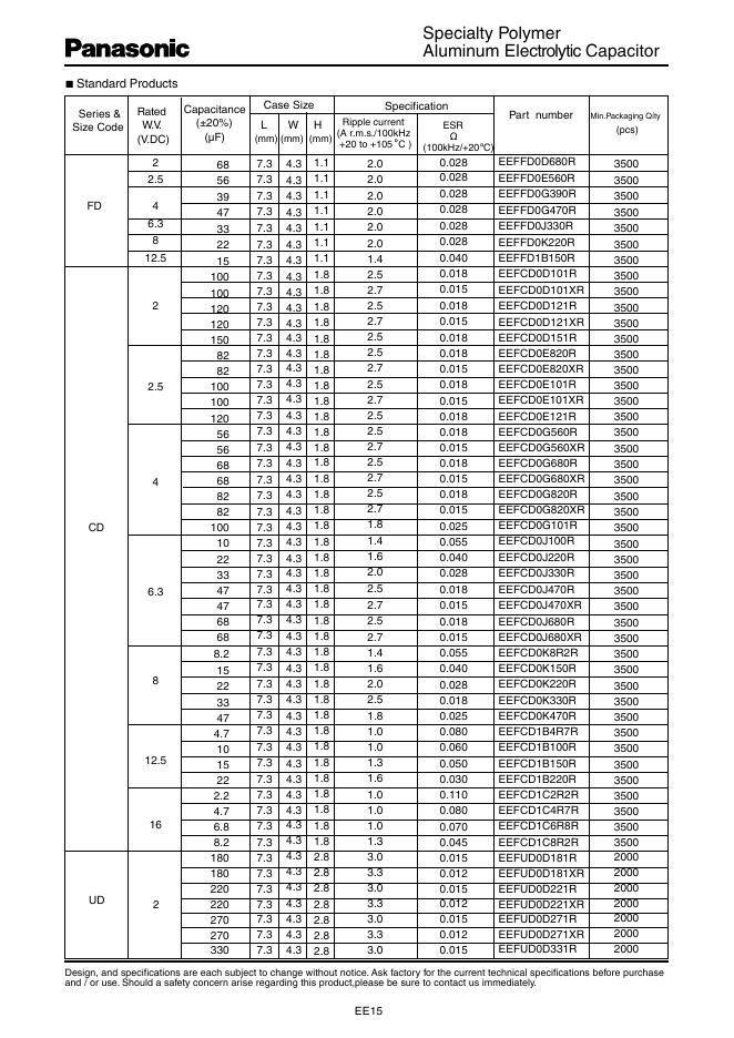 松下 FD,CD,UD,UE Surface Mount Type 数据手册.pdf