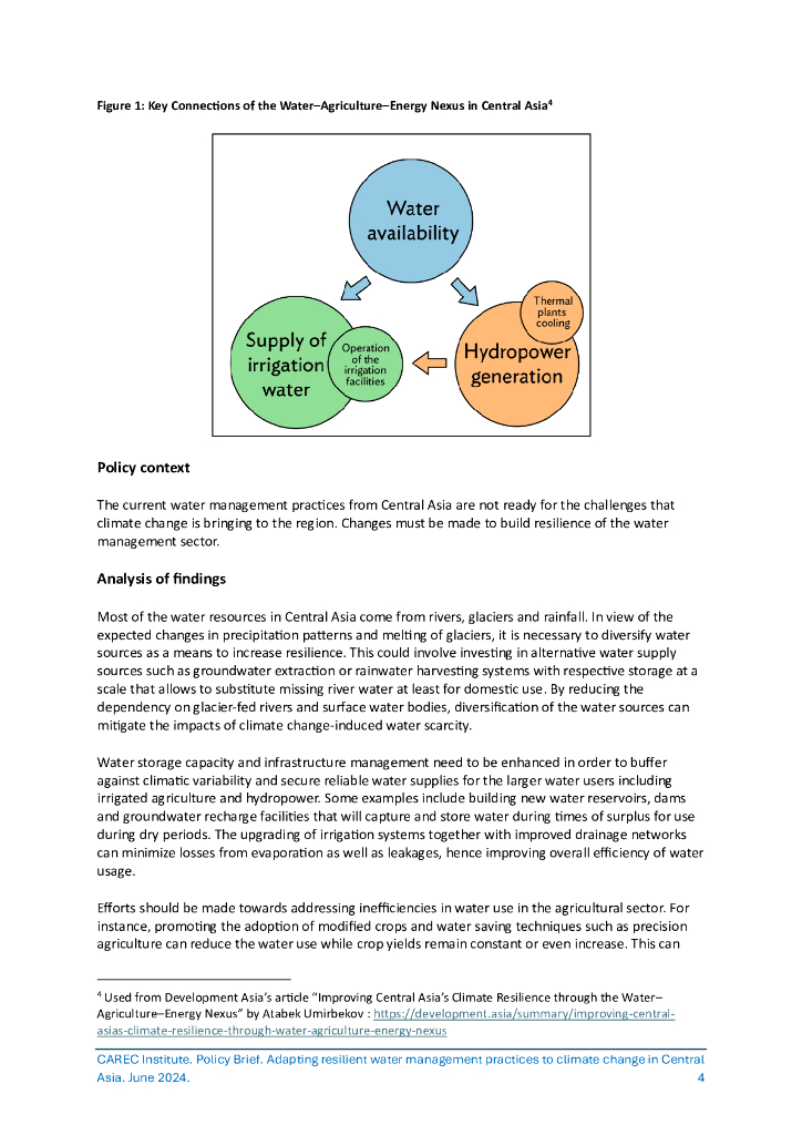 中亚学院:2024关于中亚地区适应气候变化的弹性水资源管理实践的新政策简报(英文版).pdf