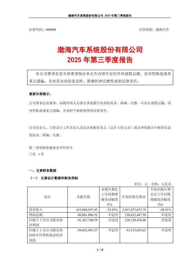 600960-渤海汽车:2025年第三季度报告.pdf