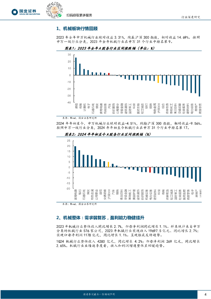 国金证券:机械行业23年年报&24年一季报业绩综述:需求复苏延续,看好工程机械、通用机械、船舶及铁路装备.pdf