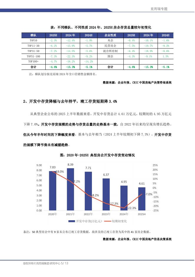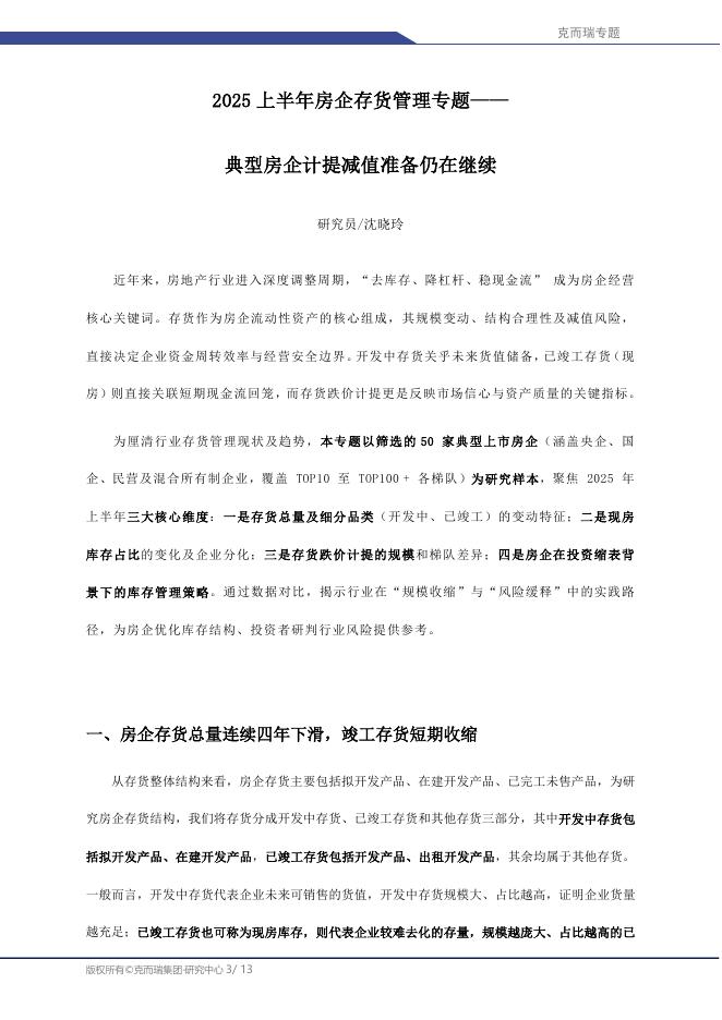 克而瑞:2025上半年房企存货管理专题报告-典型房企计提减值准备仍在继续.pdf