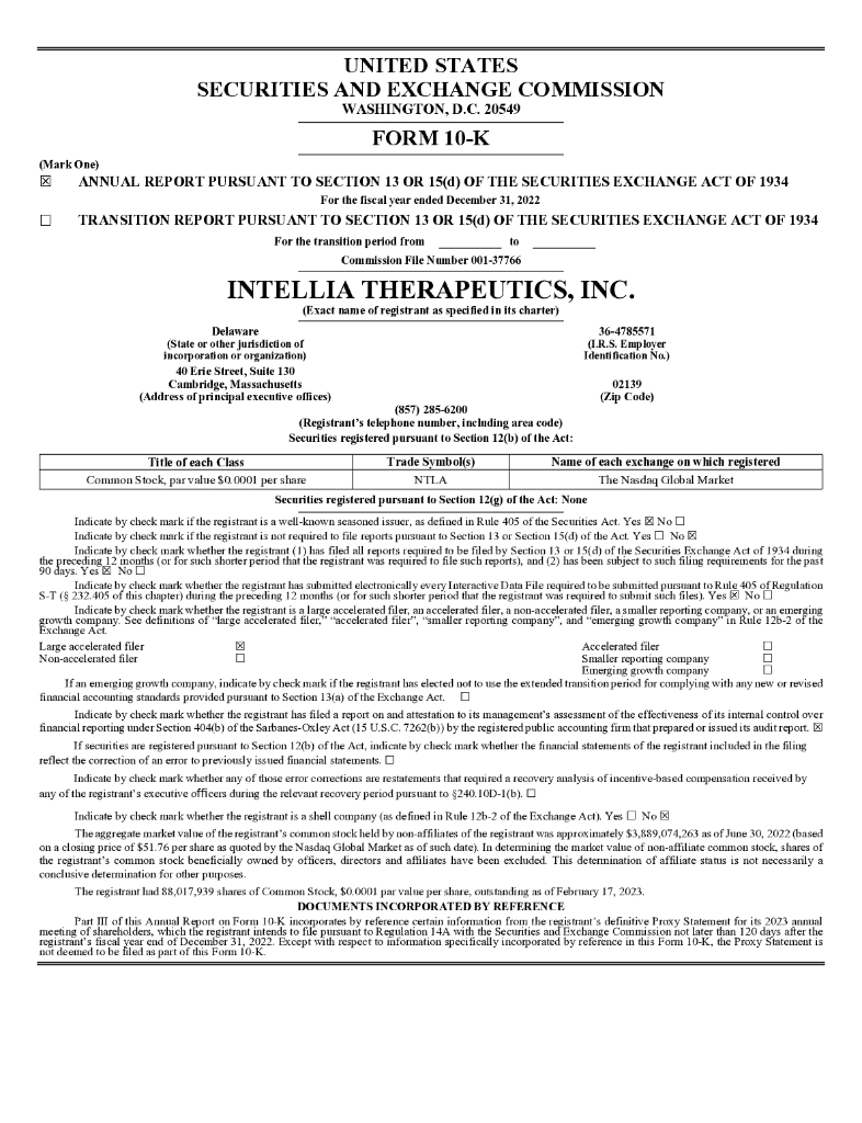 Intellia Therapeutics, Inc.(NTLA)2022财年年度报告(英文版).pdf