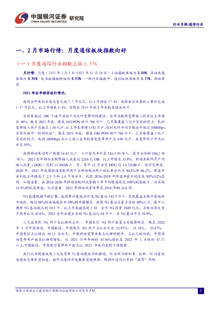 中国银河:通信:2月通信指数有所回升,电信行业经济运行良好.pdf