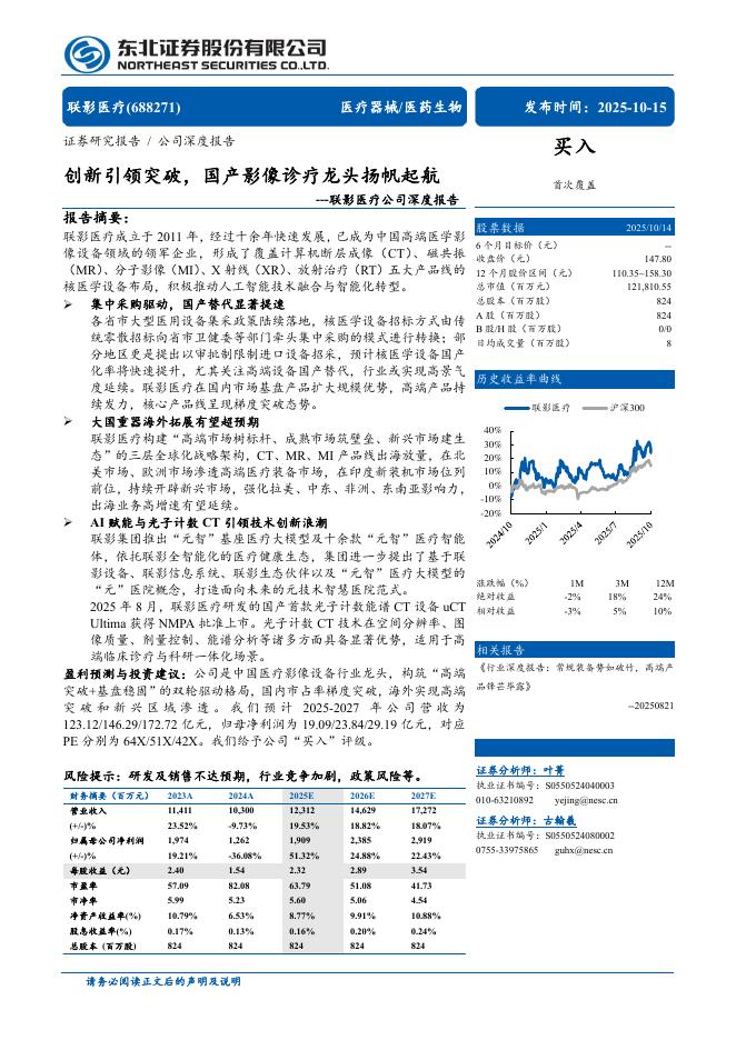 东北证券:联影医疗(688271)——公司深度报告-创新引领突破,国产影像诊疗龙头扬帆起航.pdf