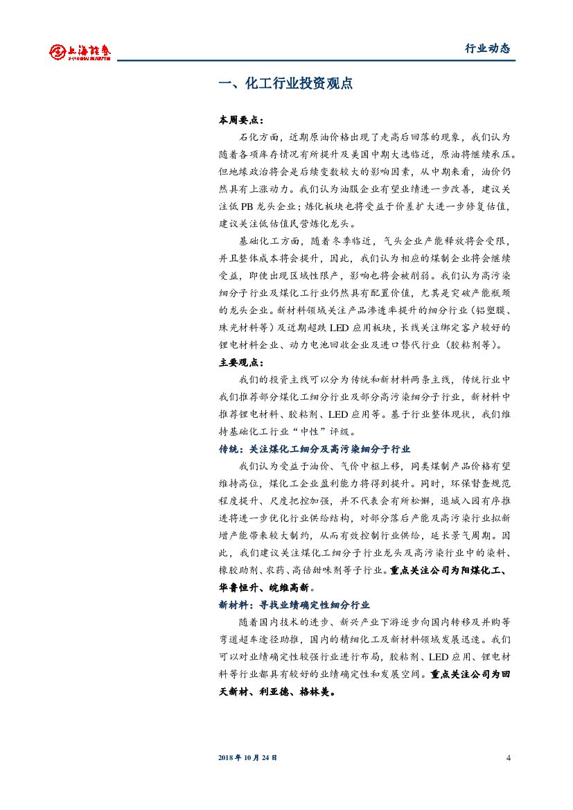上海证券:化工行业周报:油价区间波动,关注新材料细分龙头.pdf