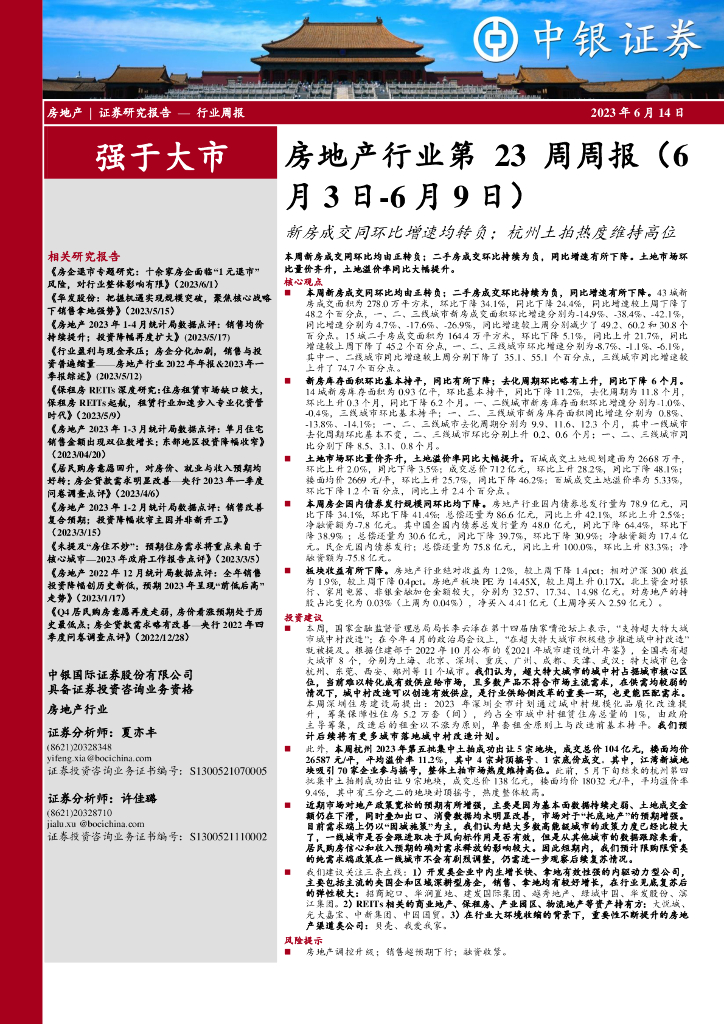 中银证券:房地产行业第23周周报:新房成交同环比增速均转负;杭州土拍热度维持高位.pdf