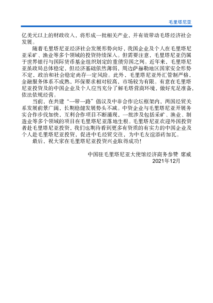 商务部:对外投资合作国别(地区)指南:毛里塔尼亚(2021年版).pdf