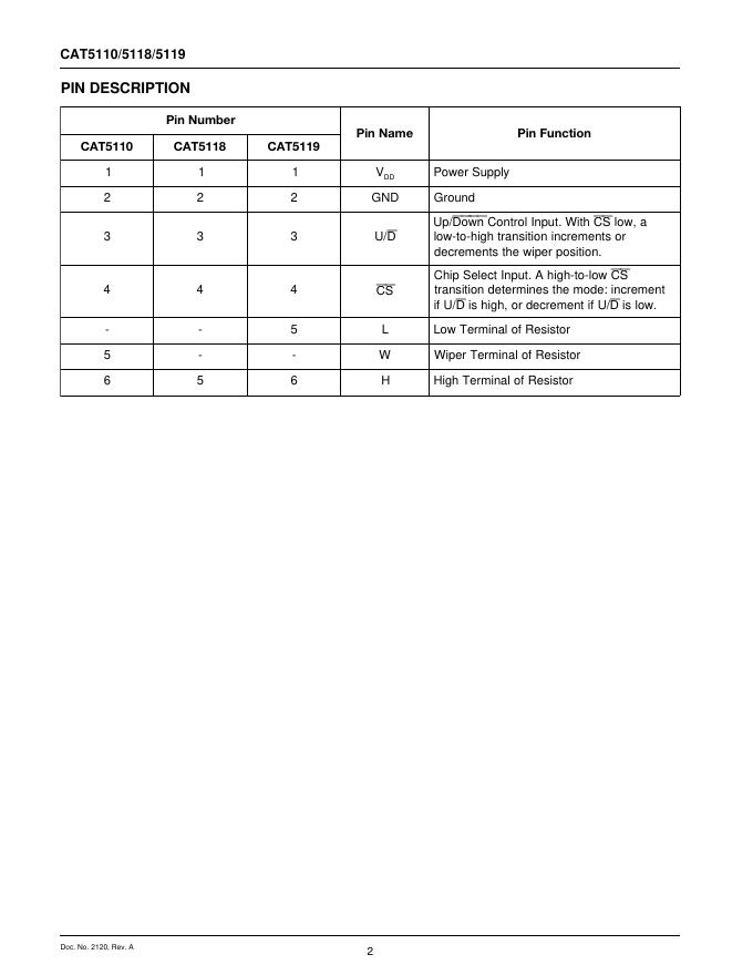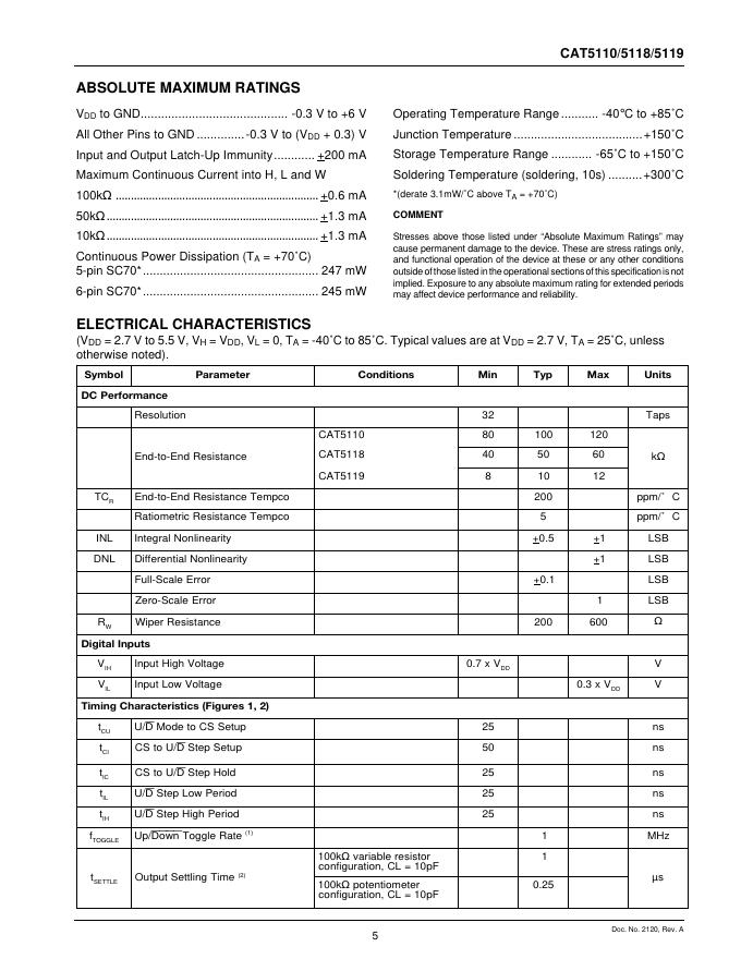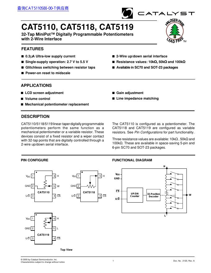 CATALYST CAT5110, CAT5118, CAT5119 数据手册.pdf