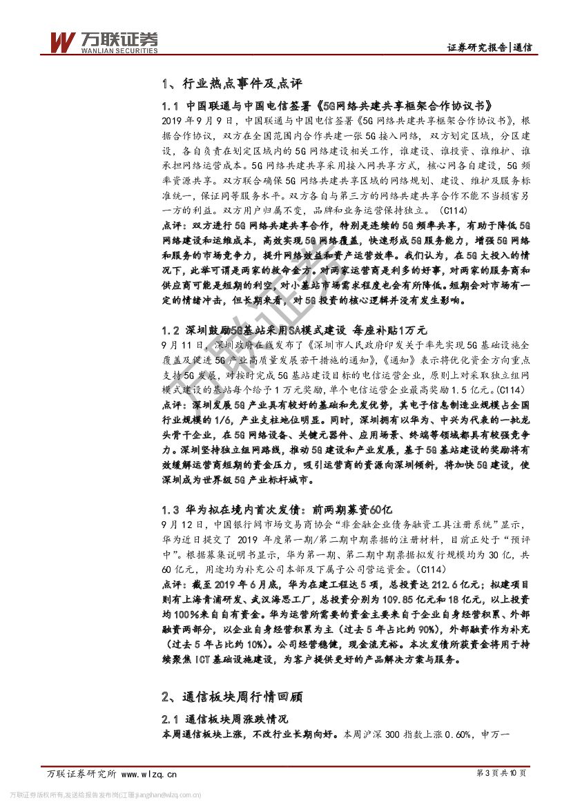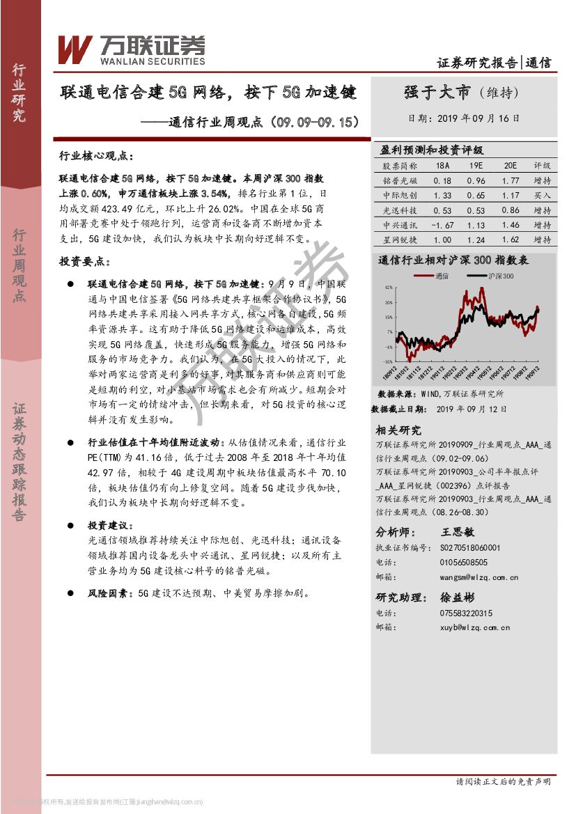 万联证券:通信行业周观点:联通电信合建5G网络,按下5G加速键.pdf