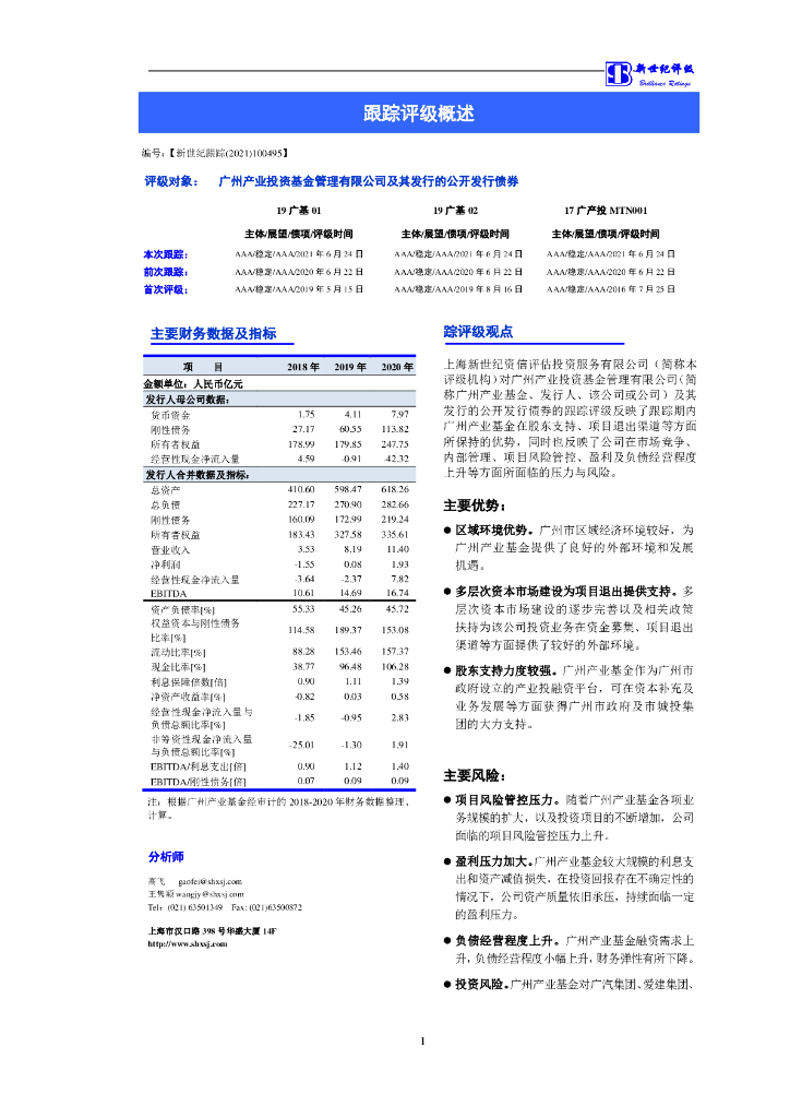 新世纪:广州产业投资基金管理有限公司信用评级报告及跟踪评级安排.pdf