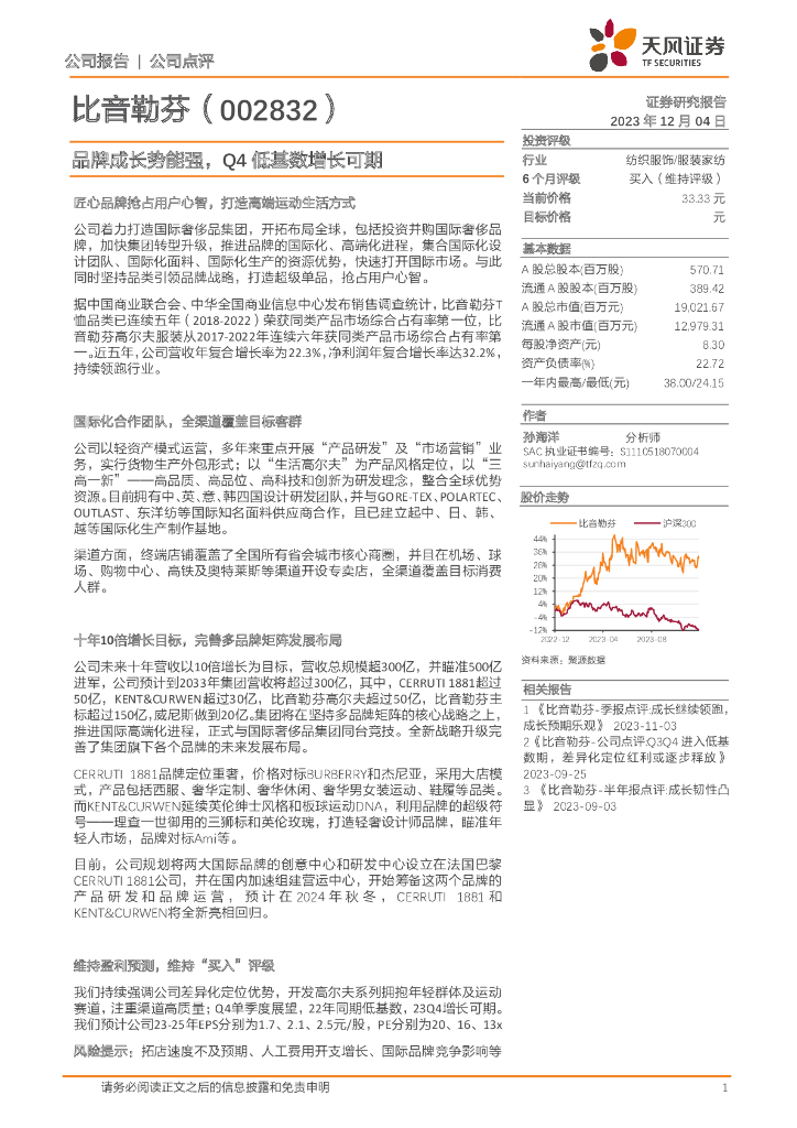 天风证券:比音勒芬(002832)-品牌成长势能强,Q4低基数增长可期.pdf