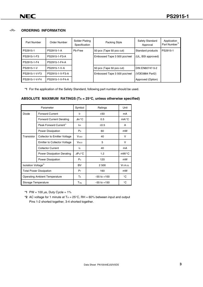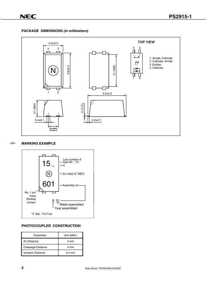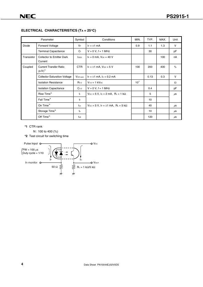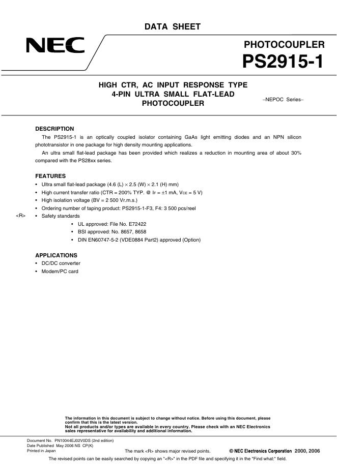 NEC NEPOC Series PHOTOCOUPLER PS2915-1 数据手册.pdf
