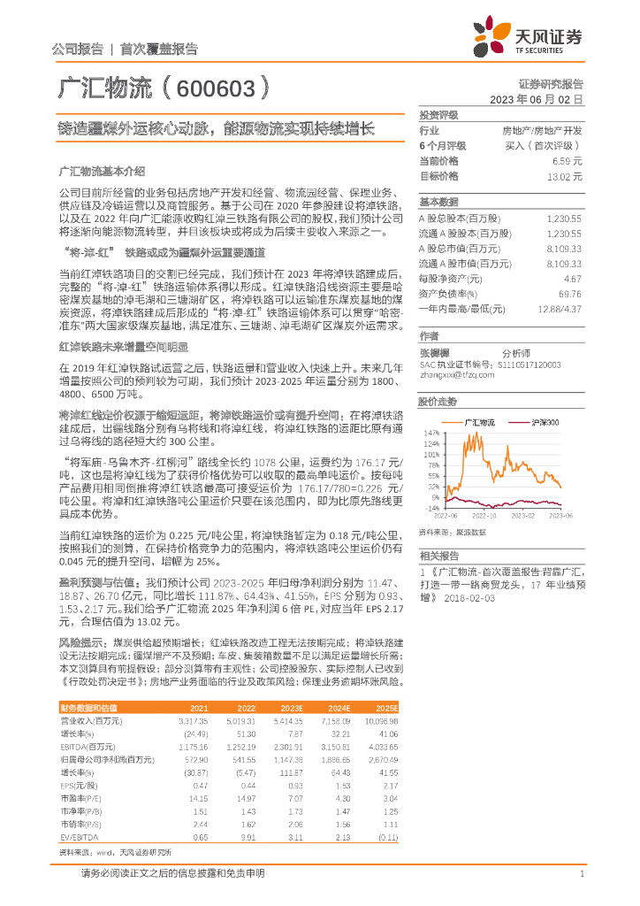 天风证券:广汇物流(600603)-铸造疆煤外运核心动脉,能源物流实现持续增长.pdf