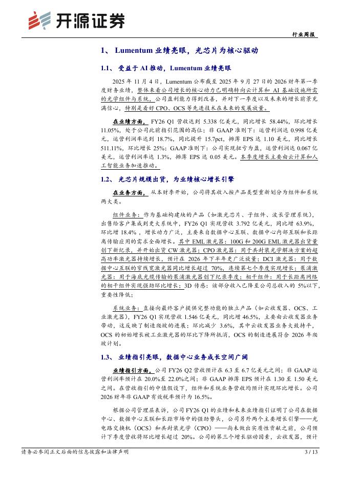 开源证券:通信行业周报:Lumentum业绩亮眼,光芯片为核心驱动.pdf
