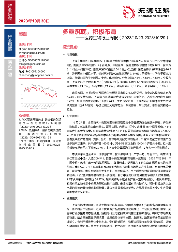 东海证券:医药生物行业周报:多重筑底,积极布局.pdf