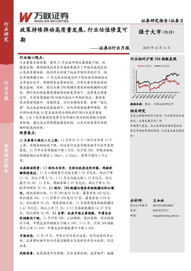 万联证券:证券Ⅱ行业月报:政策持续推动高质量发展,行业估值修复可期.pdf