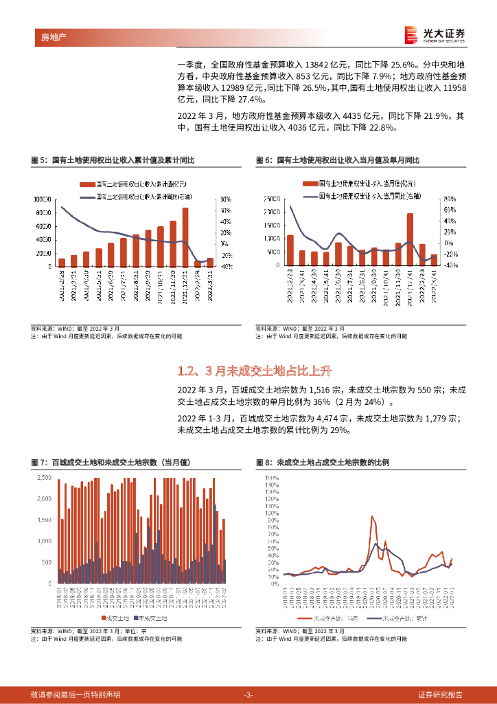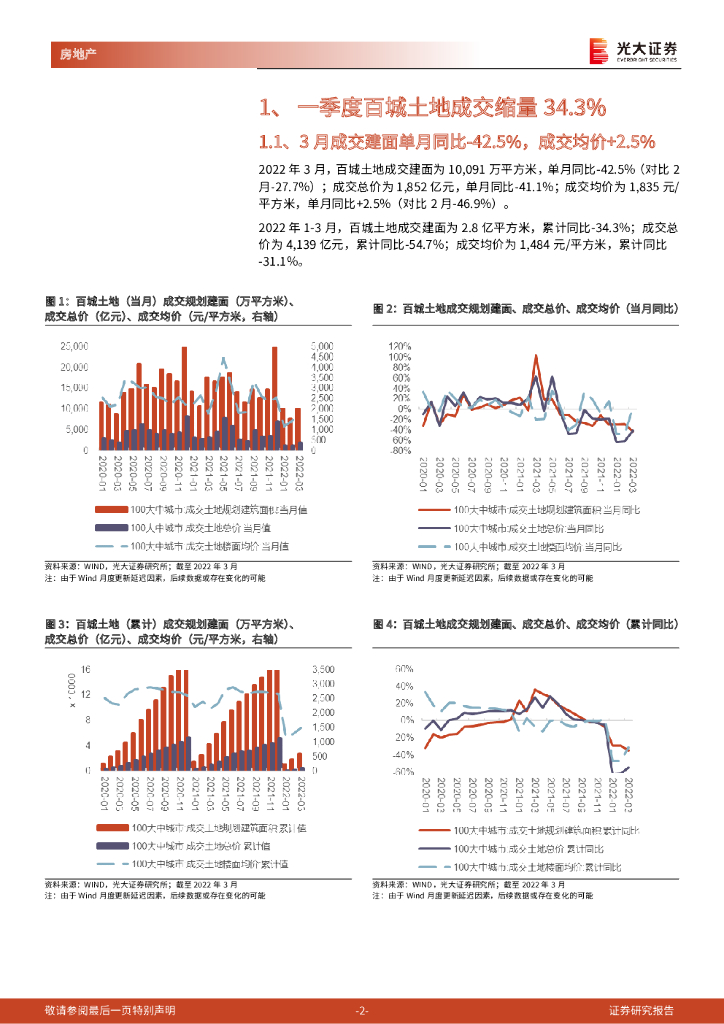 光大证券:百城土地成交月度跟踪报告(2022年3月):3月集中土拍成交超千亿,Q1土地出让金同比-27%.pdf