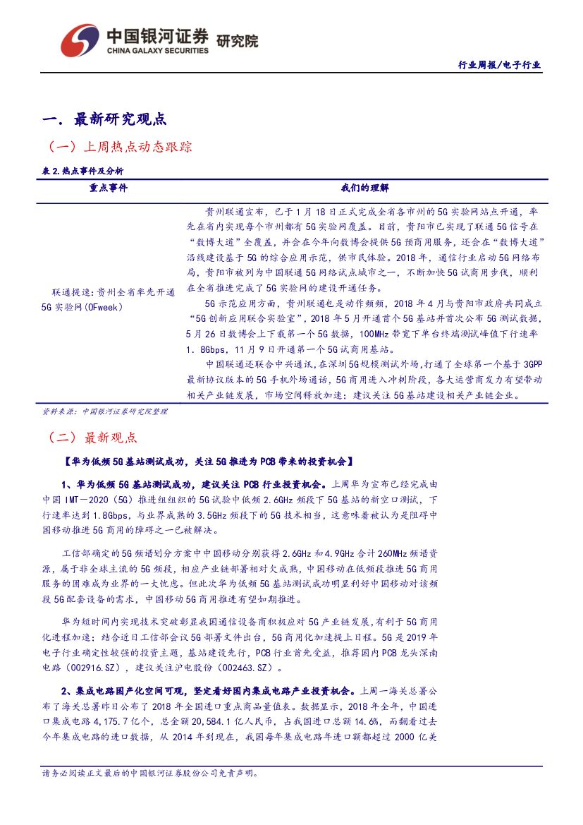 中国银河:电子行业周报:华为低频5G基站测试成功建议关注 PCB 行业投资机会.pdf