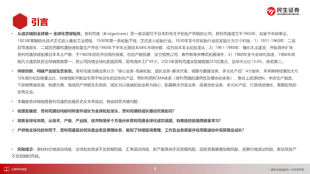 民生证券:海外零部件巨头系列五:普利司通:全球轮胎巨头技术为基、渠道为矛、持续创新.pdf