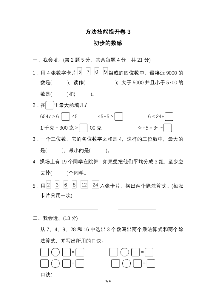人教二(下)期末冲刺卷3 初步的数感.pdf