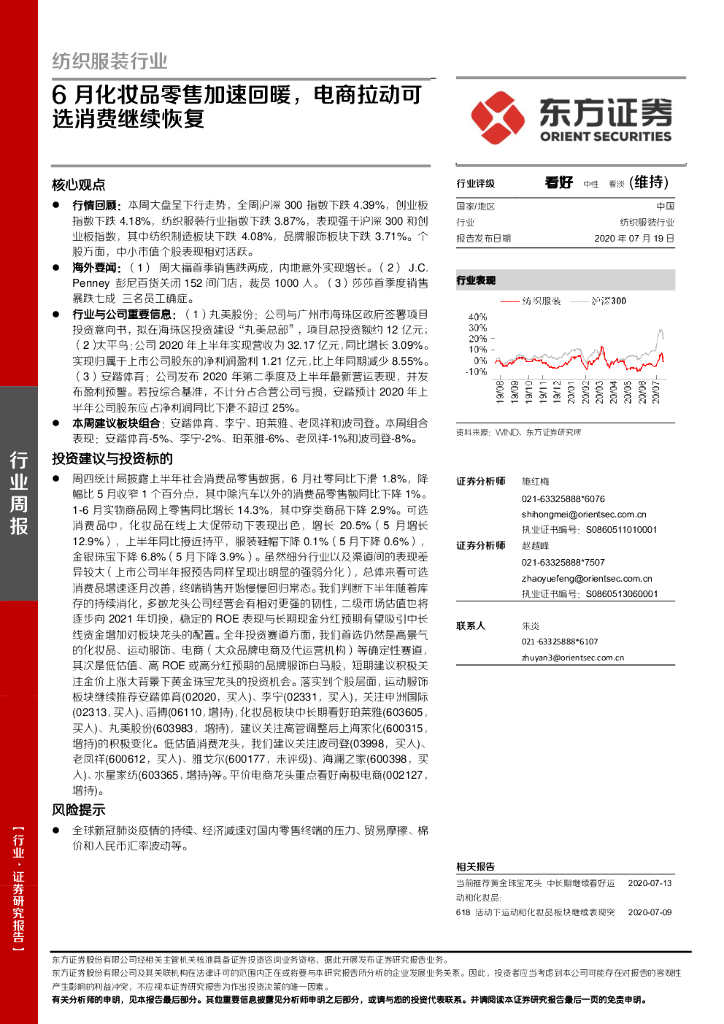 东方证券:纺织服装行业:6月化妆品零售加速回暖,电商拉动可选消费继续恢复.pdf