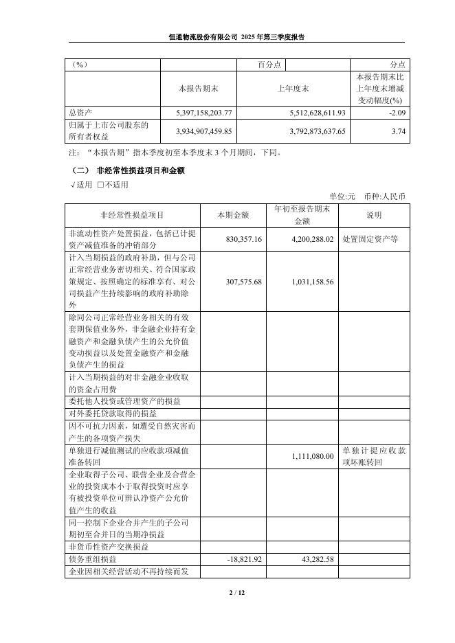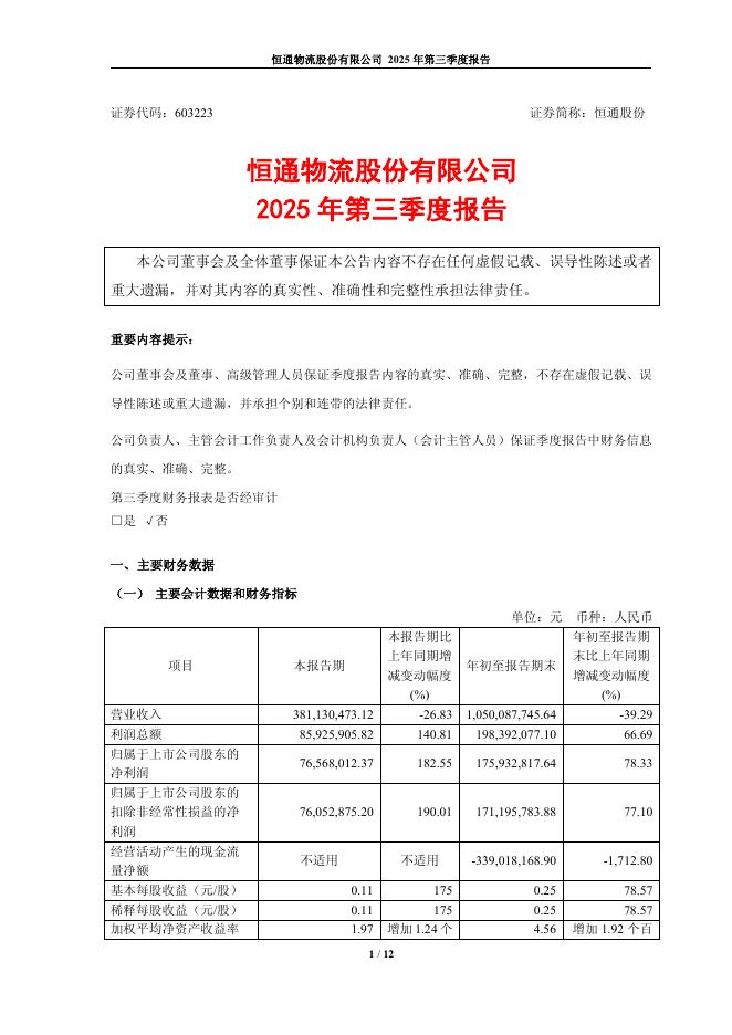603223-恒通股份:恒通物流股份有限公司2025年第三季度报告.pdf