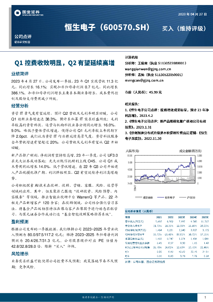 国金证券:恒生电子(600570)-Q1控费收效明显,Q2有望延续高增.pdf