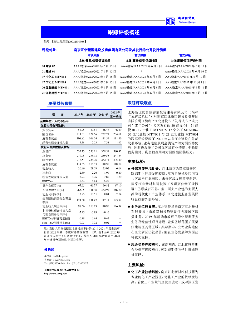 新世纪:南京江北新区建设投资集团有限公司及其发行的公开发行债券跟踪评级报告.pdf