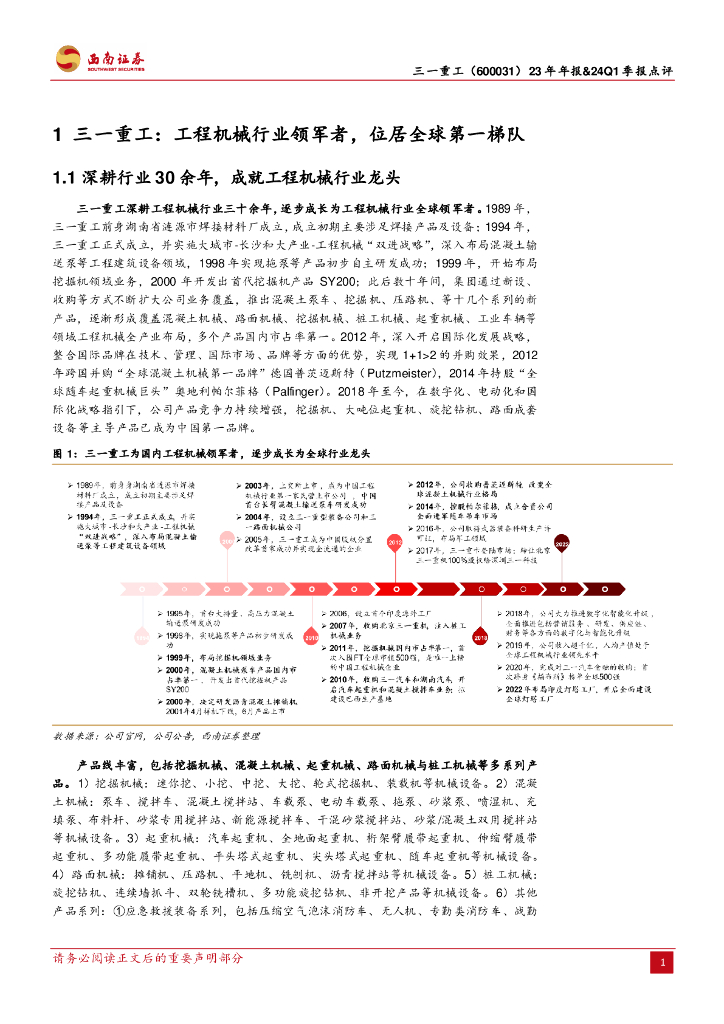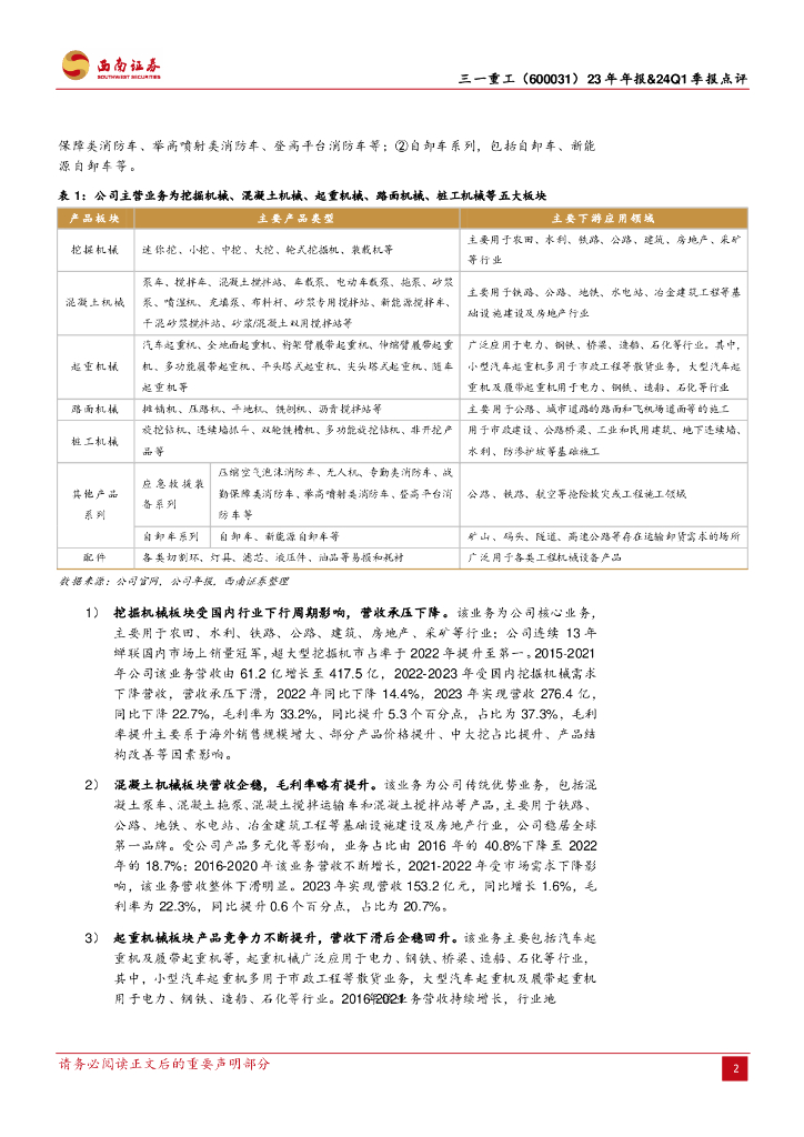 西南证券:三一重工(600031)-24Q1归母净利润同比+4.2%,盈利能力提升.pdf