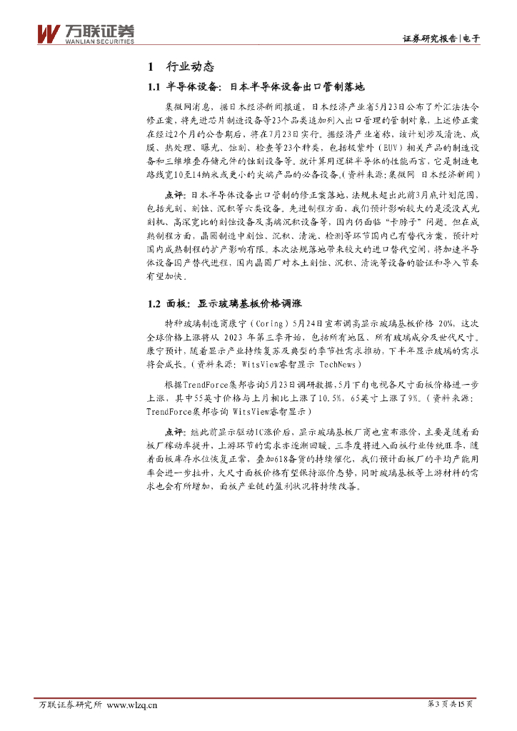 万联证券:电子行业周观点:日本半导体设备出口管制落地,显示玻璃基板价格调涨.pdf