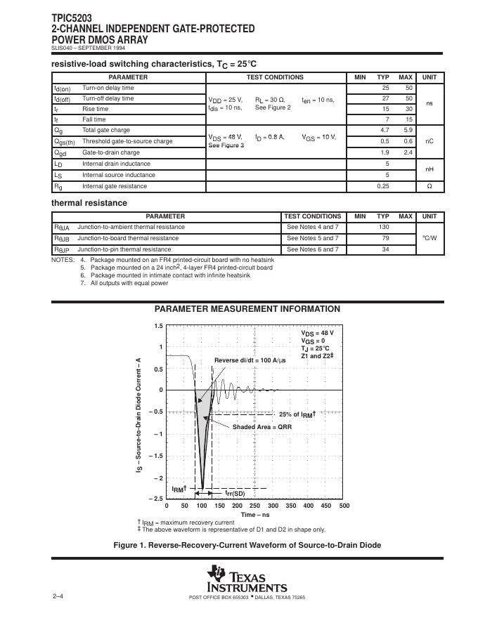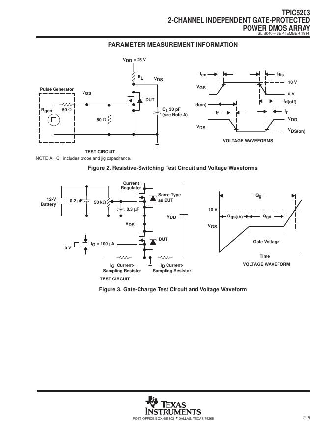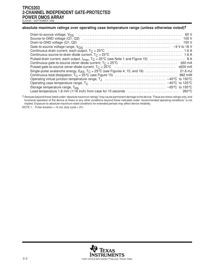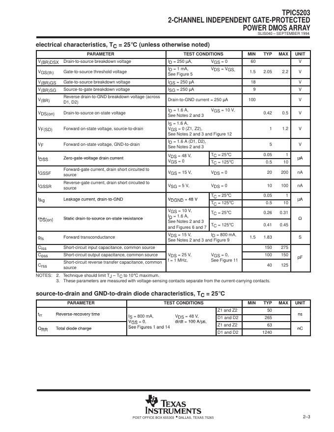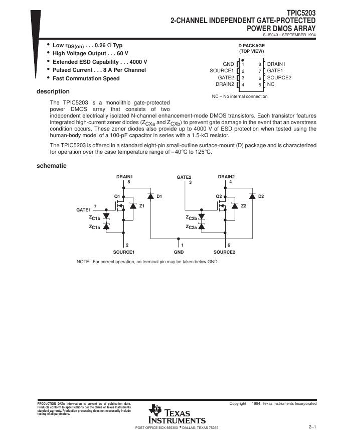 TEXAS INSTRUMENTS TPIC5203 2-CHANNEL INDEPENDENT GATE-PROTECTED POWER DMOS ARRAY 数据手册.pdf